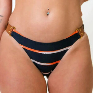 Vix's Bia bikini top is a triangle style with a striped design and goldtone accents.