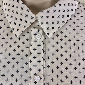 Vixbe Cream Black Print Button Front Long Sleeve Blouse Square Hem Loose Fit