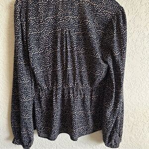 Vixbe Medium Women's Flowy Tie Neck Top Blue and Tan Speckled