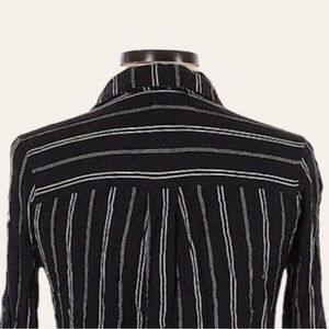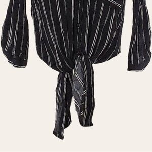 🌺 Vixbe Thompkins 3/4 Sleeve Roll Tab Button Down Tie Front Stripe Shirt Size S