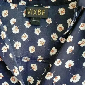 Vixbe navy floral print button up tie front blouse size small 3/4 Sleeves