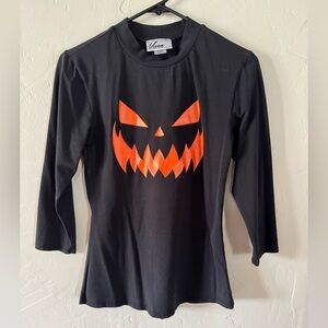 Halloween 🎃 Jack-O-Lantern top. 3/4 sleeves. Fitted size Medium. Has some cracking in screen print as shown in photos. No fading