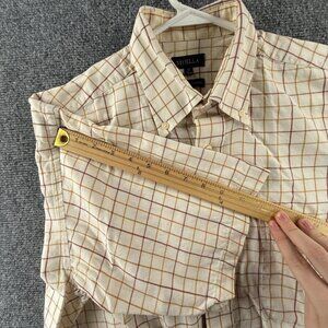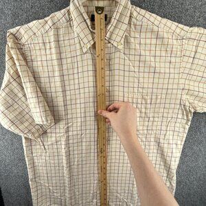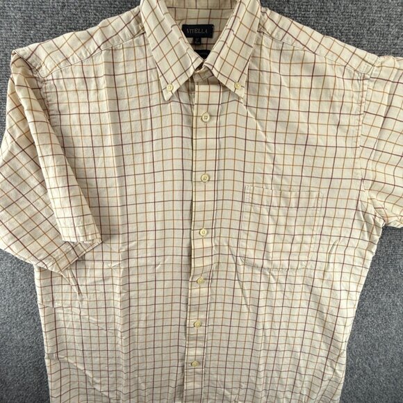 Viyella Brown Yellow 16 Check Button-Down Wool Cotton Short Sleeve Shirt Men