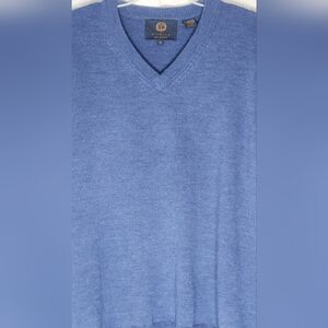 Viyella L Blue Steel Knit Longsleeve 100% MERINO WOOL V-neck Men's Sweater