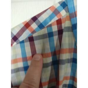 Viyella men's collared button down shirt in good condition. Multicolor plaid long sleeve two button adjustable cuff front pocket* does have small stain see third pic*