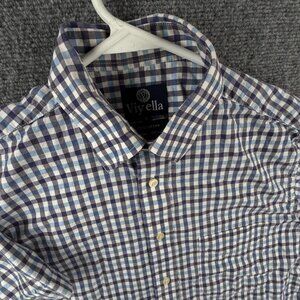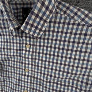 Viyella Short Sleeve Blue Purple Check Cotton Woven Medium Button Up Shirt Adult