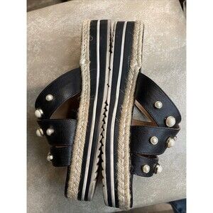 Vizzano Black sandals With Pearls size 8 Espadrilles Hemp Platform Cruise Beach