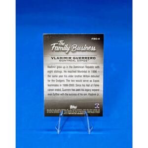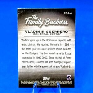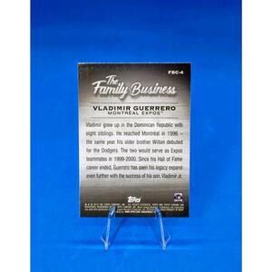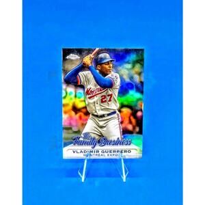The product is a 2019 Topps Chrome Update trading card featuring Vladimir Guerrero from the Montreal Expos. This single-insert card is part of the "The Family Business" set, showcasing the baseball legend alongside other notable players. As an original, licensed reprint, this card is a valuable addition for fans and collectors of Major League Baseball memorabilia, especially for those interested in Hall of Fame players like Guerrero.