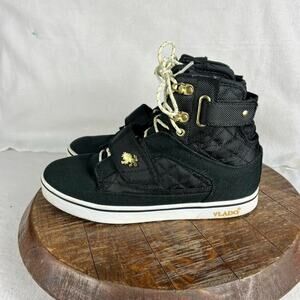 Vlado Sneakers Womens 8 Black Gold Tone Hardware Atlas II Hi-Top Canvas Upper