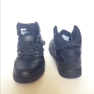 Lightly used! Really good condition, no scatches or scruffs! All black, two front straps over laces. Men's size 5 (I'm a women's size 6/ 6 1/2 US). Hype style 🎶 any questions feel free to ask below :) always willing to negotiate!
