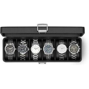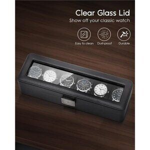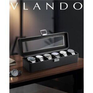 Vlando Mens Watch Box 6 Slot Leather Display Case Lockable Glass Lid Black