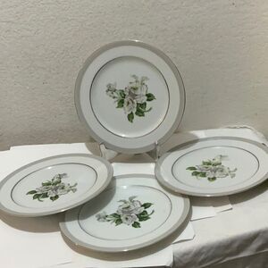 "WHITE ROSE" Platinum Pattern #3939 Japan Set of 4 Dinner Plates 10 1/8"