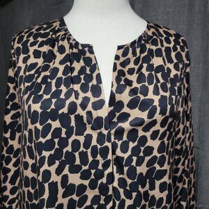 Cheetah print button-up blouse with v-neck, button sleeves. Easy to wear for work and dress up. Very gently worn condition.