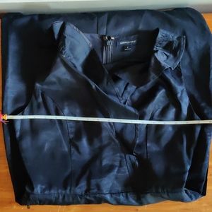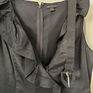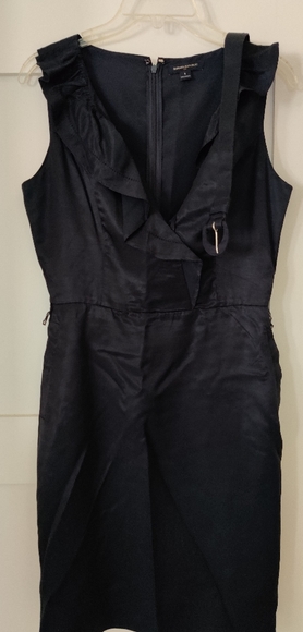 Excellent condition, dark navy blue, invisible back zipper with hook closure, 50% Viscose, 44% Lyocell, 6% Ramie, belt same fabric, fully lined 100% Polyester, worn once.