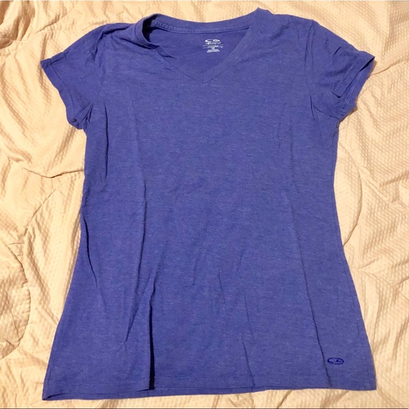 Heathered purple v-neck.