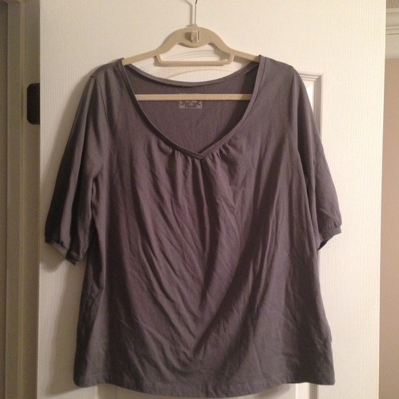 V-neck grey blouse / top. Bell sleeves. Size 14 / XL