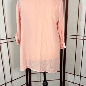 V neck sheer multi layer peachy pink blouse Sleeves can be rolled and buttoned up Sleeve 18 Pit 20 Length 26