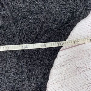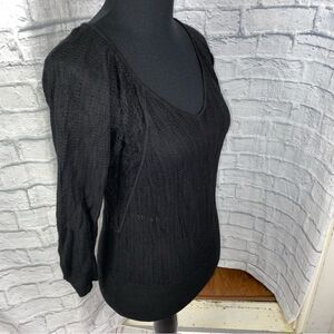 Black v-neck 3/4 sleeve lightweight sweater with open knit design, beautiful stitching on back and High Ribbed waistband for a very flattering look! Women size small