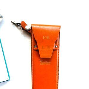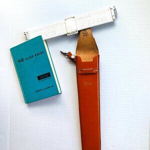 This vintage 1960's KEUFFEL & ESSER K+E DECI-LON Slide Rule 68-1100 comes with a leather case and original manual. It is a great addition to any collection of slide rules, engineering equipment, or science & medicine memorabilia. The slide rule is in good working order and has been well-maintained over the years. It is a featured refinement of K&E Slide Rule Leather Case w Original Manual, making it a unique and valuable item. (Note: inside flap has owner's name)