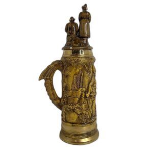 Chip On Dragon Tail see picture Vintage Fantasy Ceramic Stein This captivating ceramic stein, originating outside Germany, features a glossy finish, intricate warrior graphics, a striking dragon-shaped handle, and a matching ceramic lid. Crafted from finished greenware, it's a unique collectible for fantasy and barware enthusiasts. Finished Greenware Ceramic: A unique, non-German craftsmanship. Detailed Warrior Graphics: Depicting heroic or mythological scenes. Distinctive Dragon Handle: Adds character and collectible appeal. Matching Ceramic Lid: Complements the design, not a traditional pewter lid. Smoke-free pet-friendly home We aren't Dragon our feet when it comes to your order!