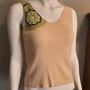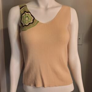 Vntg 90s Ann Taylor Loft Cream Tank Top Small Crochet Flower Cutout Y2K Ponte