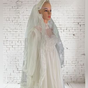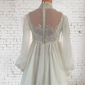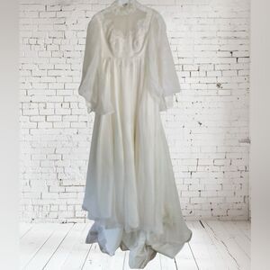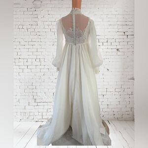 Vntg. Alfred Angelo Chiffon Wedding Dress High Neck Long Sleeves Bridal Gown