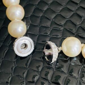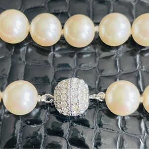 Vintage Art Deco Faux Pearl High End Designer Necklace With Crystal Rhinestone Ball Clasp