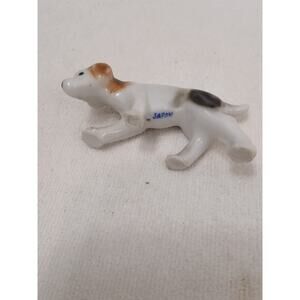 Vintage Beagle Hunting Hound Dog 3" Ceramic Figure Brown White Spots Japan Collectible