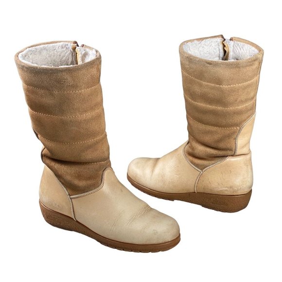 Vntg Blondo Canada Shearling Lined Beige Leather / Suede Women's Sz US 6 Boots