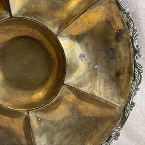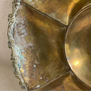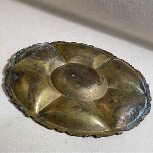 Vntg Brass Divided Tray Ornate Design Farmhouse Decor Mexico Handmade Patina