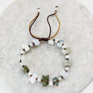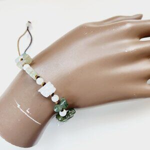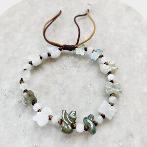 Vntg. Chinese Zodiac 12 Carved Green Jade Beads Good Luck Boho Bracelet