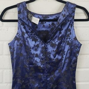- Shiney Navy blue dress with black floral and butterfly embroidery