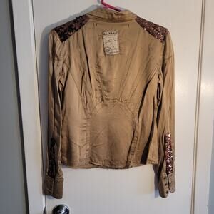 Vntg Da Nang 100% Silk Blouse Sz XS Bronze Sequin Cuff Y2K Boho Resort Wear Top