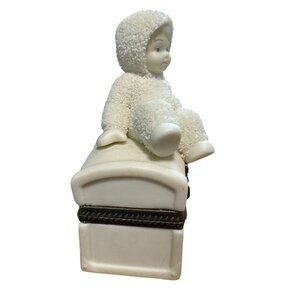 Vntg Dept 56 2000 Porcelain Angel Baby Sitting On Trinket Box With Metal Accents