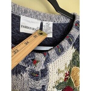 Vntg Fashion Bug Sz 14-16 Santa Hand Knit Christmas Cardigan Ugly Party Grandma