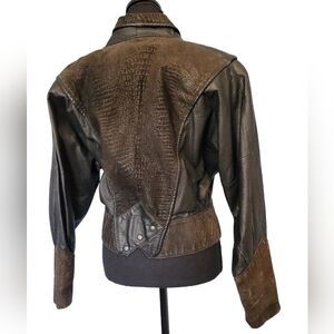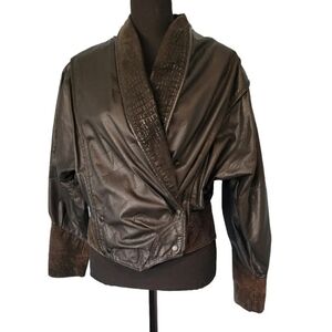 Vntg Global Identity G-III Leather Cropped Jacket in Black/Brown Size Medium