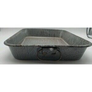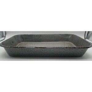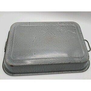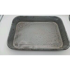 Vntg Graniteware Enamelware Roasting Pan Serving Tray Gray