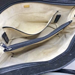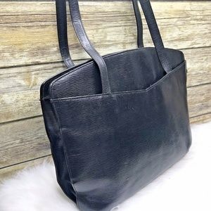 Vntg HCL Black Genuine Embossed Leather Tote Bag
