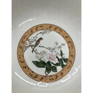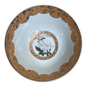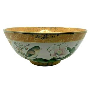 Vntg Ivory Gold Yamaji Japanese Porcelain Bowl Bird & Magnolia Motif 8" W x 3.5"