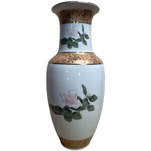 Vntg Ivory Gold Yamaji Japanese Porcelain Vase Vase Bird & Magnolia Motif 10.5"H