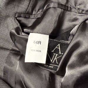 Vntg JOS A BANK Gray black small Houndstooth Suit 44R Wool Pants 37x 28.5