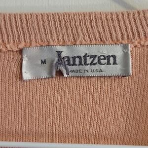 Classic dadcore layering piece — vintage Jantzen sweater in a warm retro hue, made in the USA with soft knit that feels like cashmere. Easy to style for preppy, retro, or quietlux wardrobes.