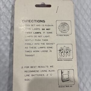 This vintage Kmart battery-operated 15 tiny bulb string wreath Christmas lights feature a festive design with red and green lights, perfect for adding a touch of holiday cheer to your space. The small size and plastic material make them ideal for both indoor and outdoor use, while the two C batteries power source ensures easy operation. Manufactured in Thailand during the 1990s, these string lights are a charming addition to any Christmas decor collection.