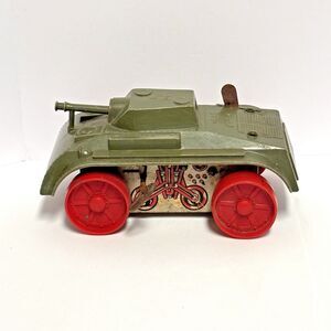 Vntg MARX Wind Up Tank Toy Green Military Army Tank Tin Litho Made In USA