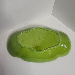 Vntg MCM Avocado Green Treasure Craft USA Ceramic 13.75" Bread Buns Rolls Servin