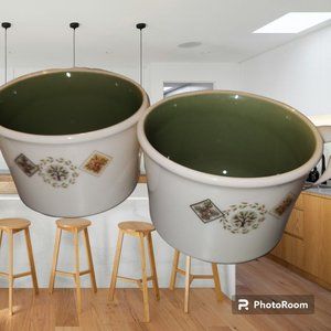 Vntg MCM Retro Taylor Smith Taylor Brocatelle Flat Coffee Cups Mugs Olive Green