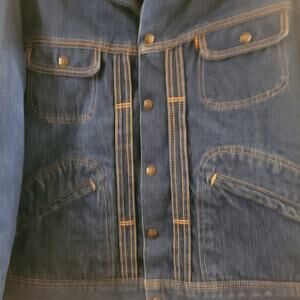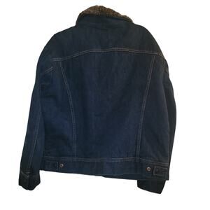 Vintage Mens 70s 80s LY Denim Chore Jacket Plaid Sherpa Lining Blue Jean Barn Truckert Coat Work Size XL Western Cowboy Brushpopper Country Rodeo Faming