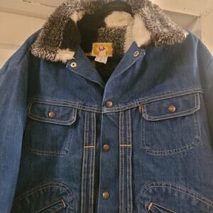 Vntg Mens 70s 80s LY Denim Chore Jacket Plaid Sherpa Lining Trucker Barn Coat XL
