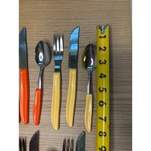 Preowned vintage , missing 1 orange fork. Scuffs from age and use but overall good condition. See all photos.