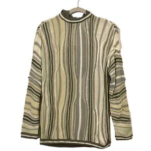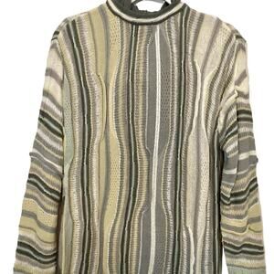 90"s Vintage Bergati 3D Gray Yellow White Cosby Style Cable Knit Hooded Sweater